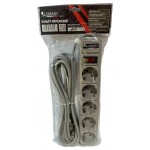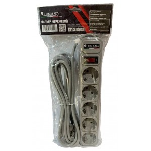 Удлинитель TM Lumano 5 гнезд на 3 метра с заземлением с кнопкой, серый