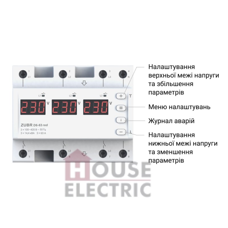 Опис Реле напряжения 3-х фазное ZUBR D6-63 red 63А